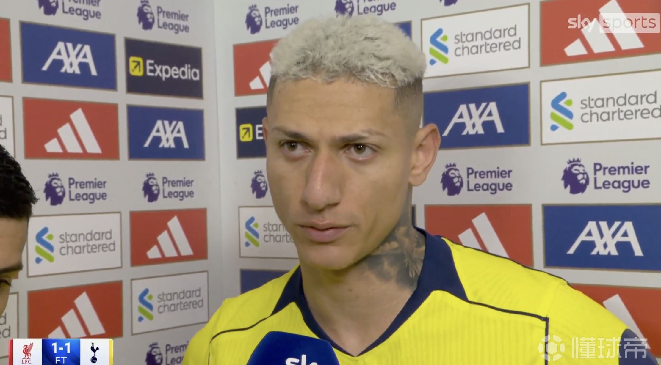 英超新闻英超第30轮,热刺客场1-1战平利物浦,此役打入扳平比分进球的热刺前锋里沙利松赛后接受了天空体育的采访。